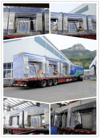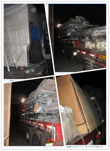 發(fā)往(wǎng)江蘇客戶的(de)隧道式洗車機正在裝貨