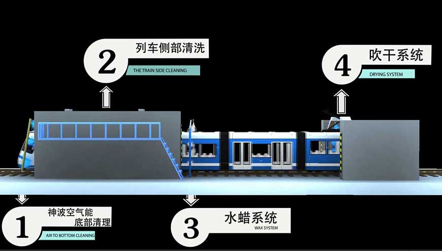 2、增加新功能——動車車底部清潔功能(néng)及(jí)智能化控製。本係統已成功應用於動車和和(hé)諧機車(chē)。本係統可提高列車安全運行,滿足列(liè)車維修保養必須的工藝條件。